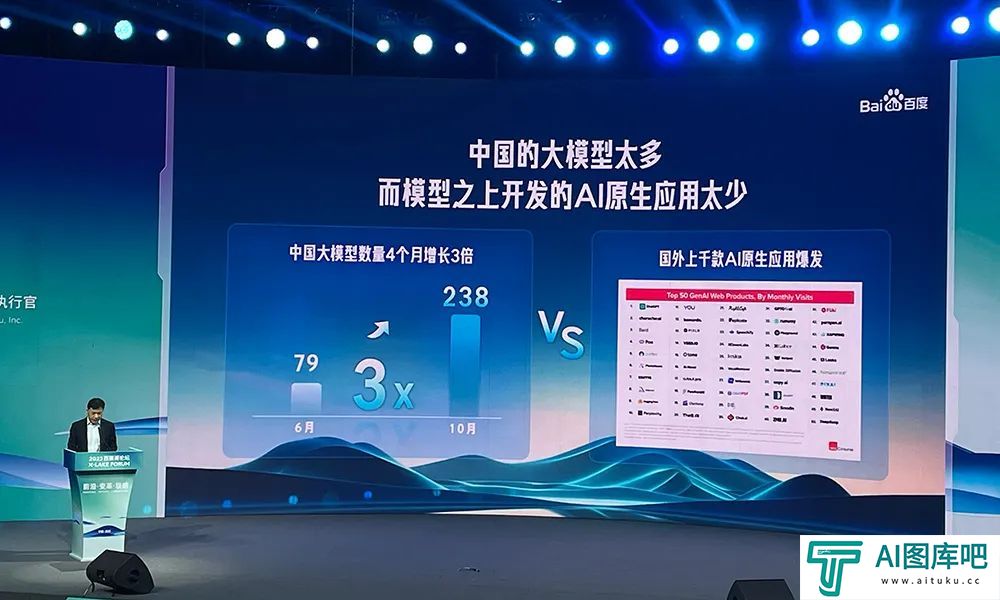 在他看来,国内有200多个大模型,上了这个榜单、进了那个排名,但其实调用量是很小的。文心大模型一家的调用量比这200多家大模型的调用量加起来还要多。