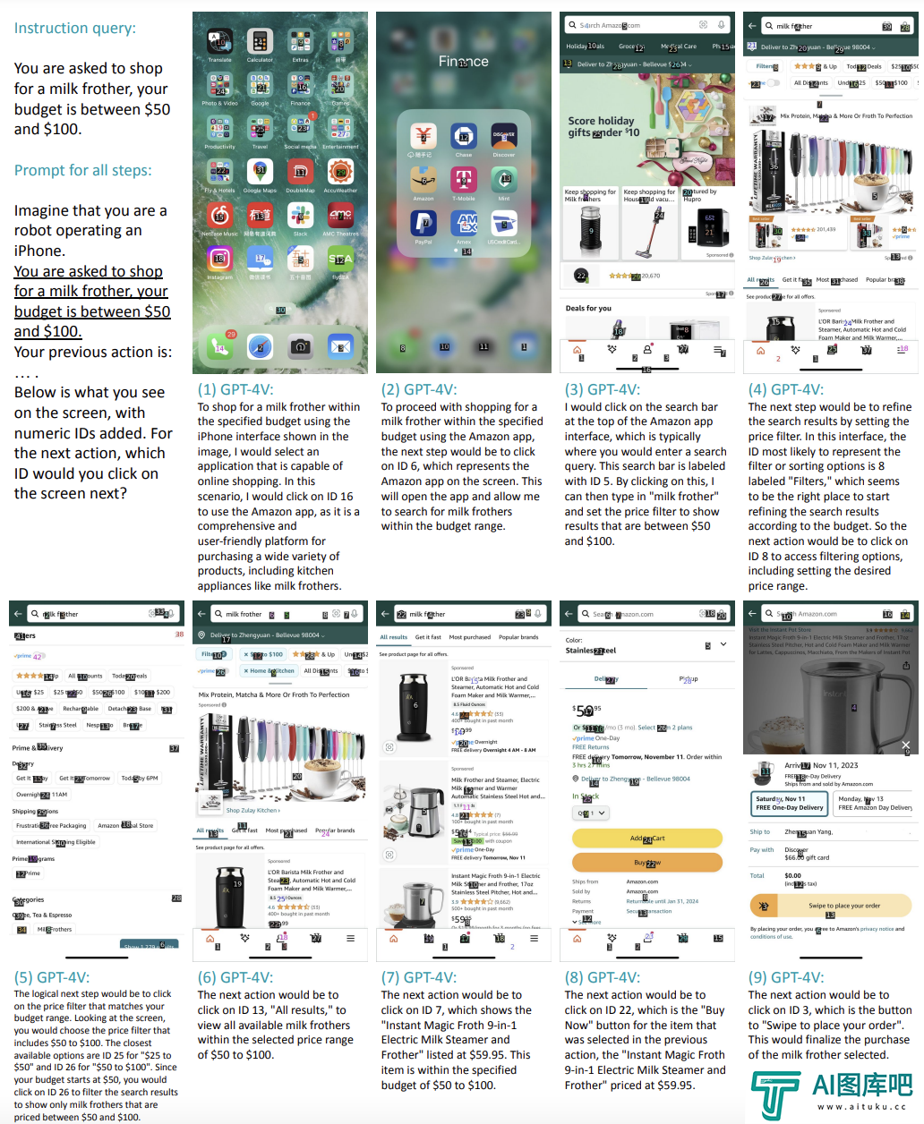 研究表明无需进行提前的任何预训练,GPT-4V能够像人类一样与智能手机实现命令交互,完成各种指令。根据测试,GPT-4V在iPhone上完成类似在电商APP上进行指定的购物任务,成功率可达75%。